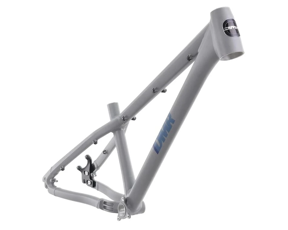 The DMR Rhythm Dirt Jump Frame offers a lot of the features of the mountain bike world with the intention of hitting jumps and pump tracks like a BMX bike. The 6061 T6 aluminum alloy frame includes interchangeable dropouts, allowing you to run gears or single speed. This dropout system slides to allow for ideal chain tensioning and chainstay length. The tapered headtube fits with a suspension fork ranging from 100 to 140mm travel. This frame is light to get you going fast on a pump track while still strong enough for big dirt jumps or skateparks.