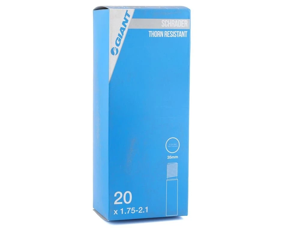 This is a Giant 20″ Thorn Resistant Inner Tube featuring a schrader valve for BMX and small wheels.