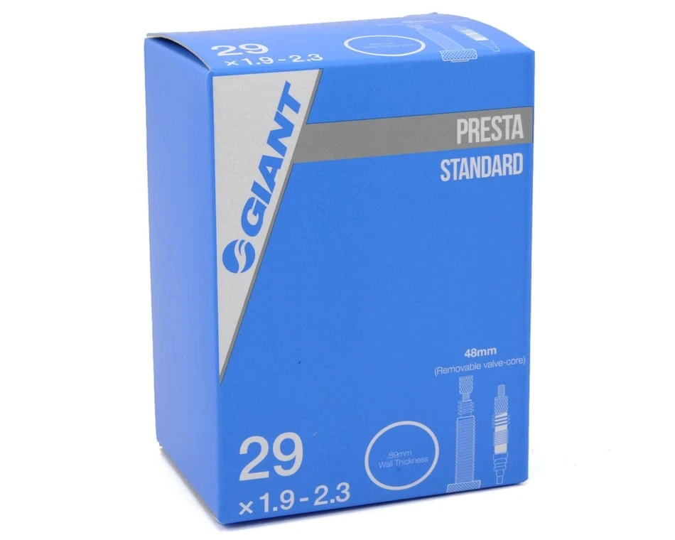 This is a Giant 29″ Standard Inner Tube with a threaded, removable core Presta Valve Stem and a .89mm Wall Thickness.
