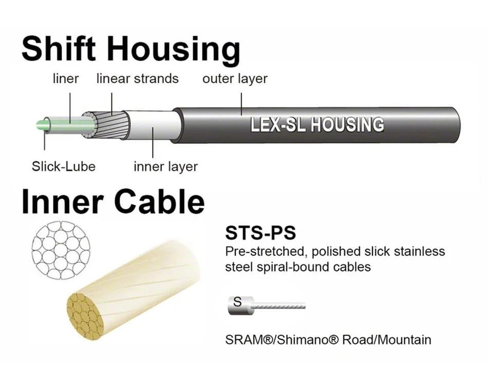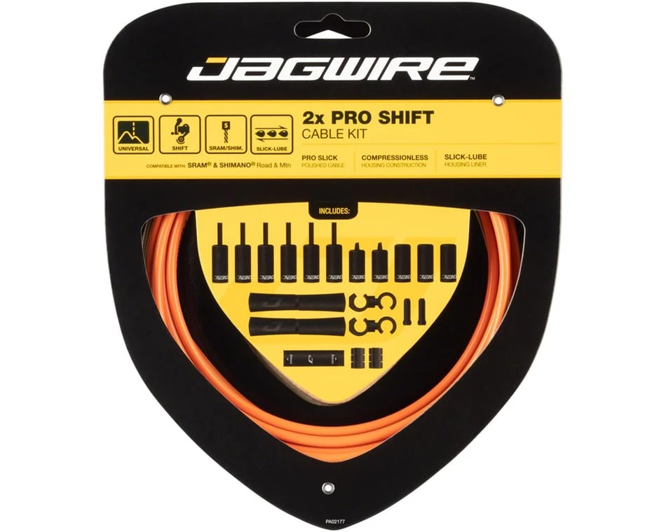 The Jagwire Pro Shift Kit is a great way to upgrade from OEM cables and housing. Slick polished cables reduce friction and deliver long lasting performance, and continuously lubricated Slick-Lube liners provide precise cable movement.