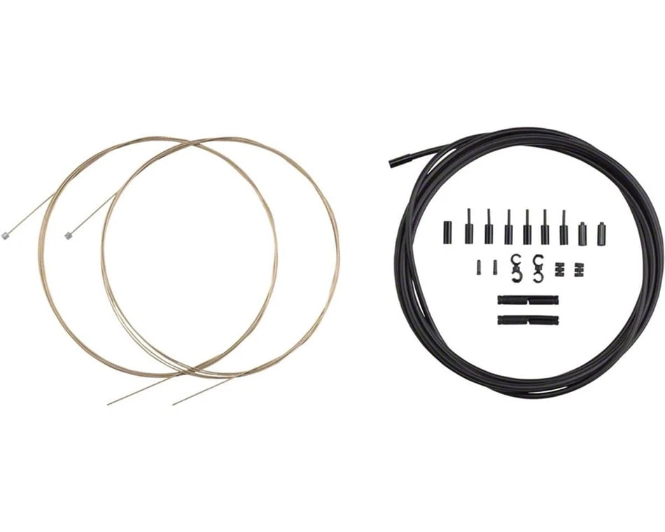 - Inner cables, housing, and small parts necessary for installation on a road or mountain bike are included