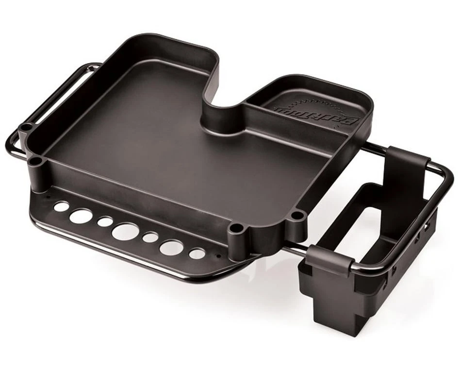 This is the Park Tool 106 Repair Stand Work Tray. This work tray is a must have repair stand accessory and makes it easy to keep tools, lubes and spare parts within easy reach.