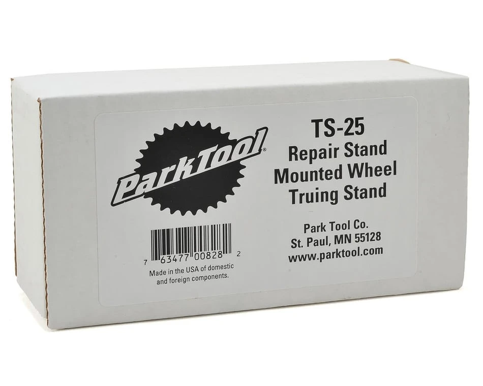 This is the Park Tool TS-25 Repair Stand Mounted Wheel Truing Stand. Small, lightweight and accurate, the TS-25 Truing Stand securely holds any wheel using a quick release or threaded axle and adjusts for any wheel diameter and rim width. Installs and removes quickly and easily. Fits PRS-25 and PCS-10 Repair Stands. Will also fit the PCS-1 and PCS-4-1, PCS-4-2, and PCS-4 Repair Stands when used with the adjustable height extension.