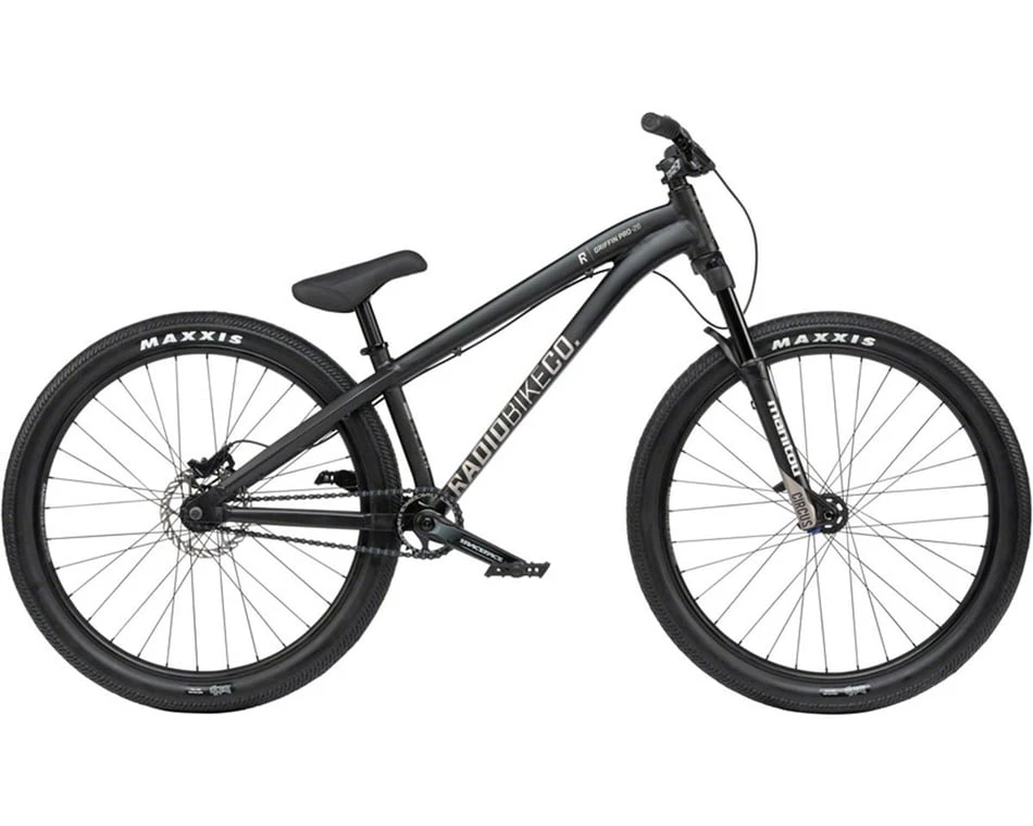 The Radio Griffin Pro Dirt Jumper is certainly worthy of having “Pro” in the name. With the light-weight 6061-T6 aluminum frame, paired with the Manitou Circus Expert 100mm fork, a high-end parts package from Race Face, and Maxxis DTH tires, what more could you want?! This rig is ready to be flipped and whipped on a big slopestyle course, or to just flow around a pump track.
