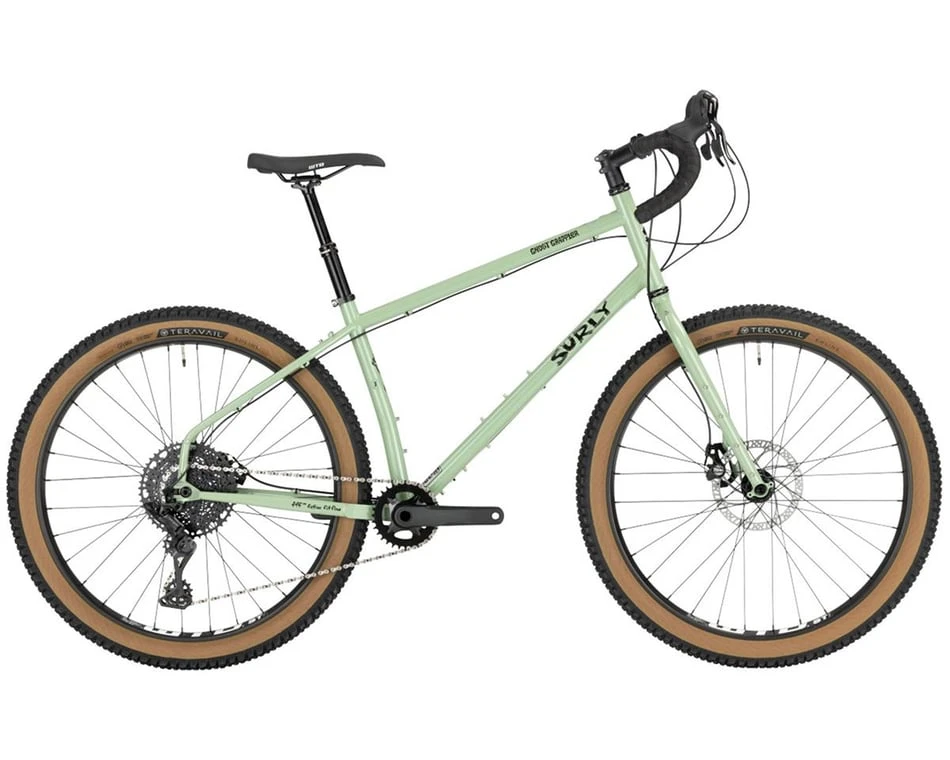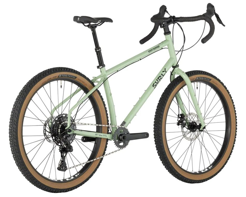 The Surly Grappler is engineered first and foremost around a stable and comfortable drop-bar hand position, its trail-ready geo provides a spirited ride on mixed terrain. Cleared for girthy tires and decorated with an array of mounts for hauling your daily provisions and overnight gear, the Grappler is ready to take you and your paraphernalia down that overgrown fire road for an extrasensory experience. There’s nothing to be afraid of. Probably.