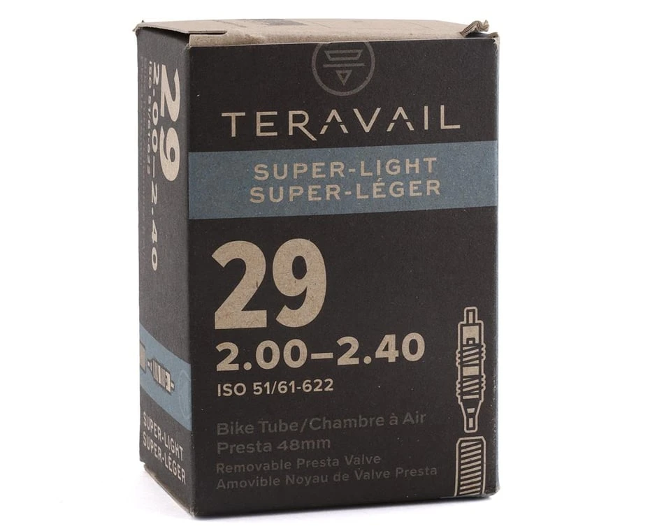 Teravail Superlight 29″ Tube provides high performance with removable valves, .76mm wall thickness, and Teravail reliability.